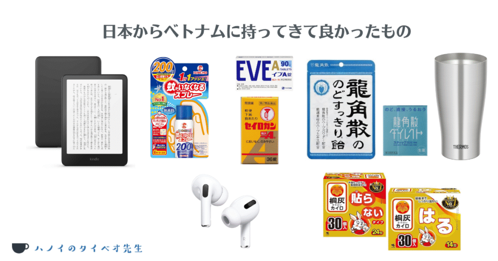 次に、ベトナム生活で私が個人的に日本から持ってきてよかったなと感じているモノをいくつかご紹介します。